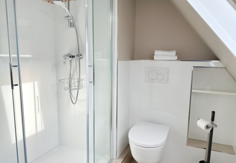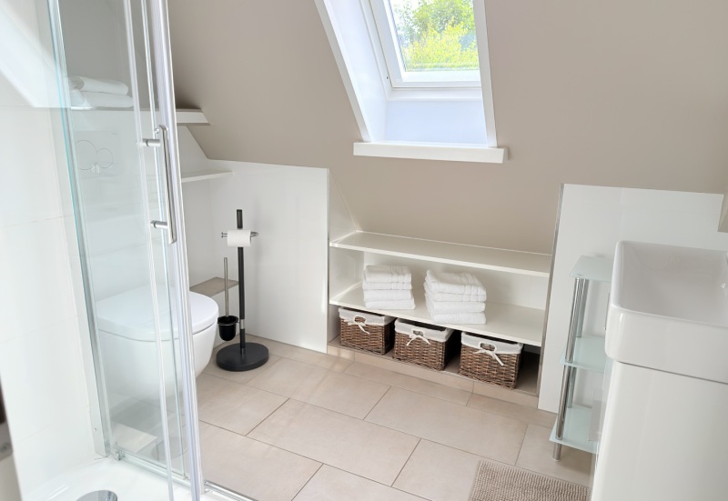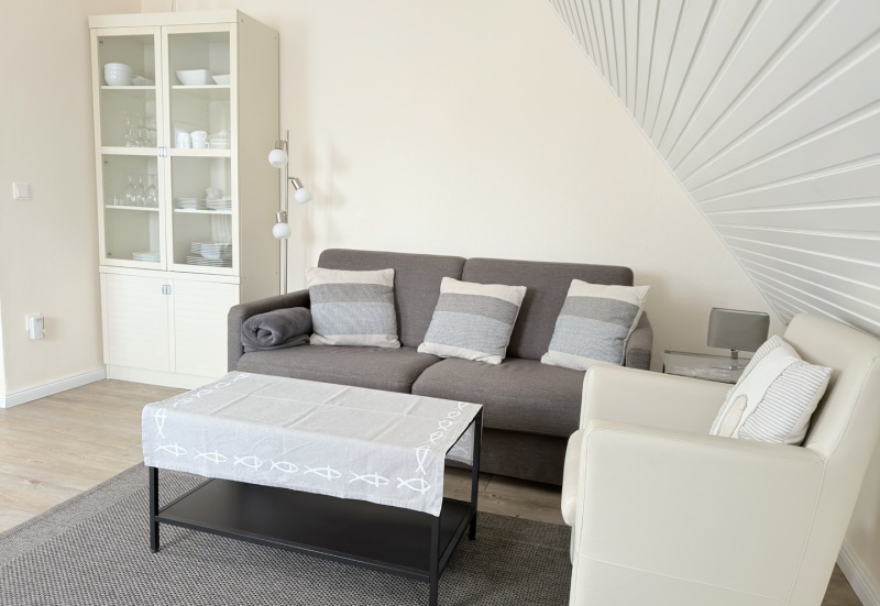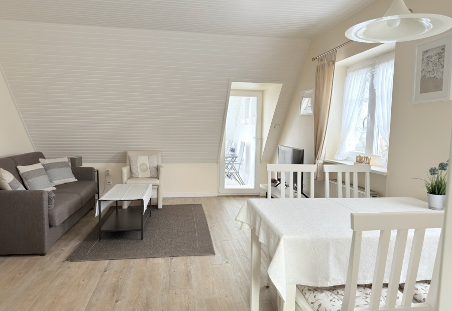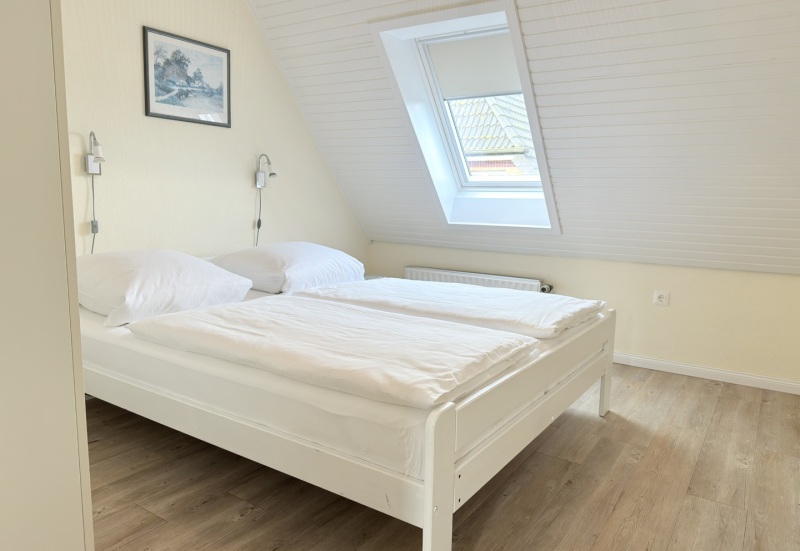 Unsere schöne Ferienwohnung D2 im Dachgeschoss ist ca. 50 m² groß und hat einen gemütlichen Balkon mit Blick in den Garten. Sie ist mit einem Doppelbett und einer Ausziehcouch ausgestattet und somit für 2-4 Personen geeignet.