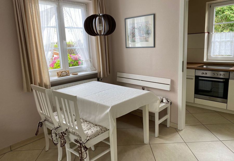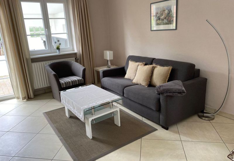 Unsere schöne, sonnige Ferienwohnung mit Terrasse im Erdgeschoss ist ca. 50 m² groß und für 2-4 Personen geeignet. Die moderne Einrichtung lädt zum entspannten Urlauben ein.